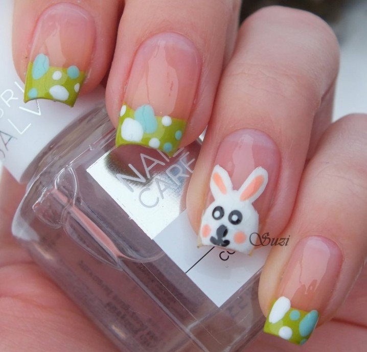 This French Manicure is simple yet still stylish. It seems that it is showing us a nice picture with a lovely fat bunny hidden in the green grass.
